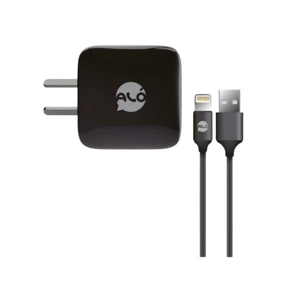 CARGADOR DE PARED ALO TURBO NEGRO CABLE SPRING LIGHTNING