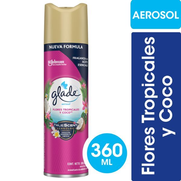DESODORANTE DE AMBIENTE GLADE FLORES TROPICALES AEROSOL X 360 ML.